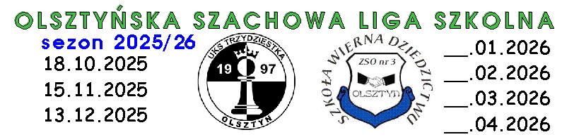 Olsztyn - Zajęcia szachowe - jesień 2025 (piątki): Grupa B (wiek 11+, ranking min 1600 ) ![]() Grupa C (1200 -1400 w wieku 12+, 1000 w wieku 15+) ![]() Grupa D (1000 - 1400 do lat 12) ![]() 25.10 - Biskupiec; Szkolenie szachowe z Mistrzem Piotrem Renkowskim ![]() Mistrzostwa Polski i Eliminacje